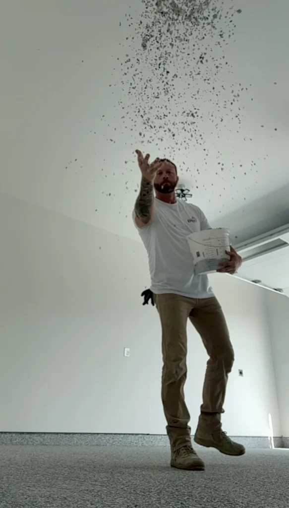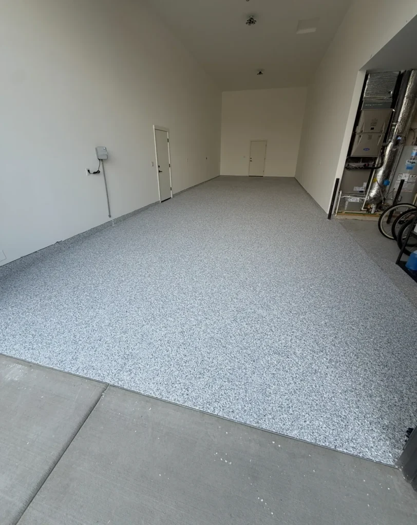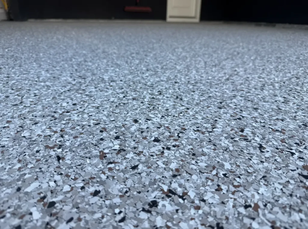 Epoxy has a smooth finish, but we add flake texture or anti-slip additives to increase traction, especially in garages, patios, and poolside areas.